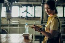 Spätestens wenn sich Qiaoqiao und Guo Bin nach all den Jahren wiederbegegnen und die Masken abnehmen, erzählen die Falten in den Gesichtern, aber auch die stumpf gewordenen Augen, eine Geschichte vom Älterwerden, die Zhao Tao (übrigens Jias Ehefrau) und Zhubin Li als Leinwandkörper natürlich gleichermaßen betrifft. Worte brauchen sie dafür nicht, es wird wenig bis gar nicht gesprochen in Caught by the Tides. Sehr sporadisch tauschen sie Textnachrichten aus, die wie Zwischentitel im Stummfilm eingeblendet werden. Nach einem intensiven Blickduell liest ein besorgter und überaus belesener Supermarkt-Roboter eine tiefe Traurigkeit in Qiaoqiaos Gesicht. Er liegt damit nicht unbedingt falsch.