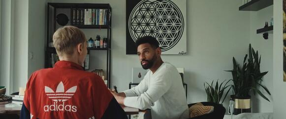 Soldaten des Lichts arbeitet Strukturen von Ungleichheit, Ausbeutung und Abhängigkeiten heraus. Einmal fragt eine Stimme aus dem Off, wie lange Timo glaubt, noch bei David zu bleiben. Der Bioscan laufe noch, so ohne Zögern dieser. Und er habe einen Vertrag. Dann ruft David schon nach seinem Shake, und Timo erkundigt sich, ob fest oder flüssig. Es ist einer von zwei Momenten, in denen sich das Filmteam ins Geschehen einschaltet. Ein anderes Mal tut es das in einem Gespräch mit David. Anlass ist ein öffentlich-rechtlicher Fernsehbericht zu einem Gerichtsprozess gegen Davids Geschäftspraktiken: Meint er das ernst mit den satanischen Blutritualen? Die Stimme der Filmer grenzt sich von den Glaubenssätzen ab, die David präsentiert und die er mit Ausgrenzungserfahrungen in jungen Jahren rechtfertigt. Im Kontakt mit David bleibt ein Unbehagen angesichts des Umstands, dass Menschenfängern wie ihm durch die Berichterstattung Sichtbarkeit und Reichweite gegeben wird. Der Dokumentarfilm ist jedoch ein anderes Medium als die Social Media, über die David längst für Timo einen dienlichen Nachfolger gefunden hat, einen Ersatz, dessen vierstündige Morgenroutine an ein virales Video von Ashton Hall erinnert und der sicherlich auch Davids digitalen „Inner Circle“-Zahlbereich abonniert.
