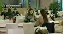 In gewisser Hinsicht ist Weitermachen Sanssouci also ein Schlaumeier-Film, und vielleicht muss er das sein, wenn er sich denkend dem Elend unserer Denkfabriken nähert. Zynisch ist er aber nie, eher ernsthaft besorgt. Am Ende singen ein paar Studis ganz melancholisch die deutlichsten Zeilen: „Warum kann es hier nicht schön sein? Und warum werden wir nicht froh?“ Präziser noch wunderte sich am Anfang Lehrstuhlinhaberin Berger während Phoebes Einstellungsgespräch über die vielen „jungen, schlauen Menschen, von denen ich mich dauernd frage, warum sie nichts gegen ihre Situation unternehmen.“ Doch der Satz fällt eben nicht im Dialog, sondern bleibt im Off, die Erzählerstimme dieses Films gehört nämlich ausgerechnet einer jener irgendwie linksintellektuellen professoralen Gestalten, die trotz Einsicht in die Falschheit des Ganzen irgendwie den eigenen Laden und damit das Ganze am Laufen halten müssen. So bleiben die Fragen stecken zwischen choralem Klagelied und der Vereinzelung des Voice-over.