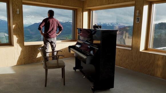 Der Film reist in seinem ersten Teil viel zwischen der Schweiz und Kanada hin und her. Mettler findet an beiden Orten schöne Einstellungen und versteht es, in seinen Kameraschwenks den Raum zu ordnen und den Blick über Schärfe und Unschärfe zu lenken. Die Schweiz liegt wie in Schneekugelharmonie da, das Dorf fast wie in die Landschaft gemalt. Nur die Kühe, die kurz in die Kamera schauen und dann weiterfressen, während Schnee sich auf ihren Rücken legt, geben dem Ganzen den Anschein von so etwas wie Alltag. Kanada ist dann im zweiten Teil präsenter, der während der Pandemie spielt und alle nach Hause zu den Mettlers holt. Trotz der sehr fluiden, transnationalen Leseart von „zuhause“, die den Film durchzieht, kehren wir doch immer wieder in dieselben Räume zurück. Das Elternhaus in Toronto ist ein zweistöckiges, fast schon deutsches Reihenhaus mit Hasen im Garten und Meisen im Fenstergiebel.