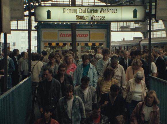 Eine statische Kameraeinstellung, die aus einem verglasten Schalterhäuschen heraus auf die Passanten des Bahnhof Friedrichstraße gerichtet ist. Pausenlos kommen Berliner:innen, Touristen und Ferngereiste vorbei und fragen, den Kopf dabei wegen all des Umgebungslärms ans Glas des Häuschens gepresst, den nur aus dem Off vernehmbaren Bahnhofsbeamten, wie man von hier aus denn nun zu dieser oder jener Straße komme. „Dit ist schon wieder Westberlin, wa?“, seufzt der selbst überforderte Angestellte auf die Frage eines alten Mannes hin – anscheinend ist der Befragte selbst Ostberliner und ahnungslos. Der gemeinsam von west- und ostdeutschen Filmemacherinnen – Lilly Grote, Konstanze Binder, Ulrike Herdin sowie die DDR-Dokumentaristin Julia Kunert – kurz nach dem Mauerfall gedrehte Dokumentarfilm Berlin, Bahnhof Friedrichstraße 1990 fängt in aller Ruhe, in bedächtig lang gehaltenen Bildkompositionen und schönen, weichen Farben Momente des Übergangs, der (Des-)Orientierung und der Alltagskomik am neuartig belebten Bahnhof in Berlin Mitte ein. Zu Zeiten der beiden deutschen Staaten war das ein streng reglementierter, von Verbotsschildern und Wachpersonal gesäumter Ort, ein Brennspiegel des Kalten Krieges, ein Verkehrsschanier zwischen Ost und West. Auf die einstige Ordnung folgt Unordnung, oder zumindest eine Art Schwebezustand, aus dem die Schwere des Systemkonflikts im Alltag der Menschen ein Stück weit verflogen scheint. Ist die Teilung doch noch präsent, zieht man sie ins Lächerliche: Wer nach Ostberlin will, muss nach wie vor den Pass vorzeigen – was das für ein unnötiger Quatsch sei, bekommen die bedröppelt rumstehenden Beamten zu hören. Der Film interessiert sich aber nicht nur für Laufwege, Abfertigungen, Durchgangsräume, sondern auch für die Menschen, die mit diesem Bahnhof ein Leben verbinden, die hier arbeiteten und arbeiten, für die der Zusammenbruch der DDR eine Zäsur im eigenen Leben, auch große Tragik bedeutet.
