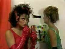 9. Dr. Penetration (1986), ein Musterbeispiel der neueren X-Generation, in Zusammenarbeit zwischen dem berüchtigten Oldie Alex de Renzy und dem Punk-King Greg Dark entstanden, ist bei aller Absurdität ein außergewöhnlich ausgeklügeltes Video über die herrliche Infantilität in und von Sex-Spielen, mit perfekten, brodelnd kraftvollen performances. Melissa Melendez hat darin einen einmaligen Part. Sie spielt Lobster Woman, die Krebsfrau, eine Assistentin des seltsamen Dr. Penetration, der via Computer die wildesten Fantasien aus den in seinem Schoß gestrandeten Pärchen herausholt. Im wavig zerzausten Haar hat die Melendez orangerote Strähnchen wie Krebsfühler. Hände und Arme, in langen, roten, eingerissenen Handschuhen steckend, bewegt sie wie Krebszangen, ganz spielerische Bereitschaft zum Zugriff. In wahrer Stummfilmmanier mit Clara-Bow-Kulleraugen und chorus girl-Bewegungen hüpft sie durch ihre Szenen. Am Anfang nimmt sie mit der immer lachenden Assistentenkollegin Sheri St. Claire ein Bad in Babyöl, eine Glitter-Glitsch-Party zweier Honigbabys mit einem künstlichen Zauberstab. Später erzählt sie den Pärchen als Begründung ihres Krebsfrauendaseins das Märchen ihrer Entjungferung, was man sogleich als Rückblende sieht. In einem angedeuteten Mädchenzimmer liegend, nur bekleidet mit der weißen Haarschleife der Unschuld, erscheint ihr plötzlich der rot-glitzernde Krebsmann Dick Rambone, der ganze Kerl ein Riesenpenis. Durch eine Zellophanwand schiebt er sich in das Zimmer der Melendez. Dort saugt und drückt sie an ihm herum, bis sein Schwanz eine solche Größe erreicht hat, „dass man Angst haben muss, der Mann könnte ohnmächtig werden aufgrund von zu wenig Blut in seinem Gehirn.“ „So werden Babys gemacht“, erklärt er ihr am Ende. Seitdem trägt sie die rote Strähne im Haar.