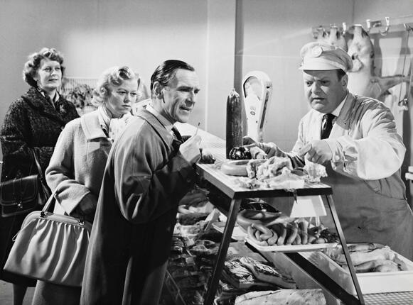 Merkwürdig war zum Beispiel das Screening von Lo strangolatore di Vienna (Guido Zurli, 1971), im internationalen Verleih durchaus auch passend The Mad Butcher betitelt, während des ehrenamtlich bespielten Terza Visione – Festival des italienischen Genrefilms im Frankfurter Filmmuseum. Der Film ist eine Gruselkomödie mit satirischem Einschlag – ein Genremix, der mir in der Regel nicht so taugt. So auch hier. Die Geschichte eines rundlich cholerischen Mannes, der, soeben aus einem Wiener Irrenhaus entlassen, im Streit seine inbrünstig ungeliebte Gattin stranguliert, sie anschließend zu Wurst verarbeitet und auf diesem Einfall aufbauend ein Menschenwürstchenimperium errichtet, tritt spätestens nach der Hälfte auf der Stelle. Aber Filme sind zum Glück nicht nur ihr Plot; aufregend ist hier etwas anderes: Zum einen die beeindruckend raumgreifende Statur unseres Antiheldenmetzgers, gespielt vom auf charismatische Nebenrollen abonnierten US-Amerikaner Victor Buono, zum anderen dessen Wortsalven. Die feuert Buono am Frankfurter Kinonachmittag mit breitestem Wiener Schmäh ab – wir sehen nämlich eine in München hergestellte, aber penibel auf wienerischen Lokalklang bedachte Synchro der rein italienischen Produktion, die mit ihrem betonten Studio-Pappmaché-Wien keinerlei Hehl aus ihrer Schauplatzprojektion macht. Nun hat sich hier das Synchronstudio in Eigenregie derart verausgabt, dass wir im Anschluss den Eindruck hatten, nicht nur einen anderen Film als das Original gesehen zu haben (das ließe sich ja mit Abstufungen von jeder Synchronfassung sagen), sondern einen authentischeren, ja echteren Film. Einen richtigen Wienfilm – einen Film, der so von seiner frech hinzugedichteten Sprachmonumentalität lebt, dass es schwerfällt, ihn sich auf Italienisch vorzustellen.