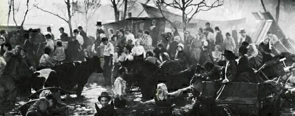 Schon vorher geizte der Film nicht mit Schauwerten. Wie oft bei King gab es enthusiastische Feierlichkeiten mit durcheinander wimmelnden Statistenmassen, und eingeführt wurde die Stadt als ein im Morast versinkender Moloch, bei dem man den Schlamm förmlich am eigenen Leib spürte. Doch wie der Regisseur den nun folgenden großen Brand von Chicago inszeniert, gerät zu einer Montage der Attraktionen, die für mich in ihrer Intensität viele zeitgenössische Blockbuster weit hinter sich lässt. In Windeseile in Flammen stehende Dächer, Massen von Feuerwehr- und Privatleuten im mal mehr, mal weniger koordinierten Großeinsatz, ein auf der Suche nach dem Schuldigen durch die Straße marodierender Mob, gigantische Rinderherden, die vor dem brennenden Häusermeer über die Leinwand galoppieren, und zuletzt werden ganze Straßenzüge mit Dynamit dem Erdboden gleichgemacht, um das Feuer aufzuhalten.