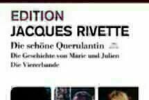 Der Vertrieb flaxfilm hat damit begonnen, eine der größten Lücken im hiesigen DVD-Sortiment zu schließen. Seit dem 3.11.2006 ist die „Edition Jacques Rivette“, die drei der bekanntesten Filme der französischen Kinolegende vereint, erhältlich. Sowohl Die schöne Querulantin, als auch Die Viererbande und Die Geschichte von Marie und Julien erscheinen erstmals hierzulande auf DVD. Die insgesamt sechs Scheiben umfassende Box bietet einen perfekten Einstieg in das Werk des Regisseurs, dessen komplexe, zauberhafte Filme das französische Kino seit Jahrzehnten maßgeblich prägen und hierzulande bisher wenig rezipiert werden. weiter